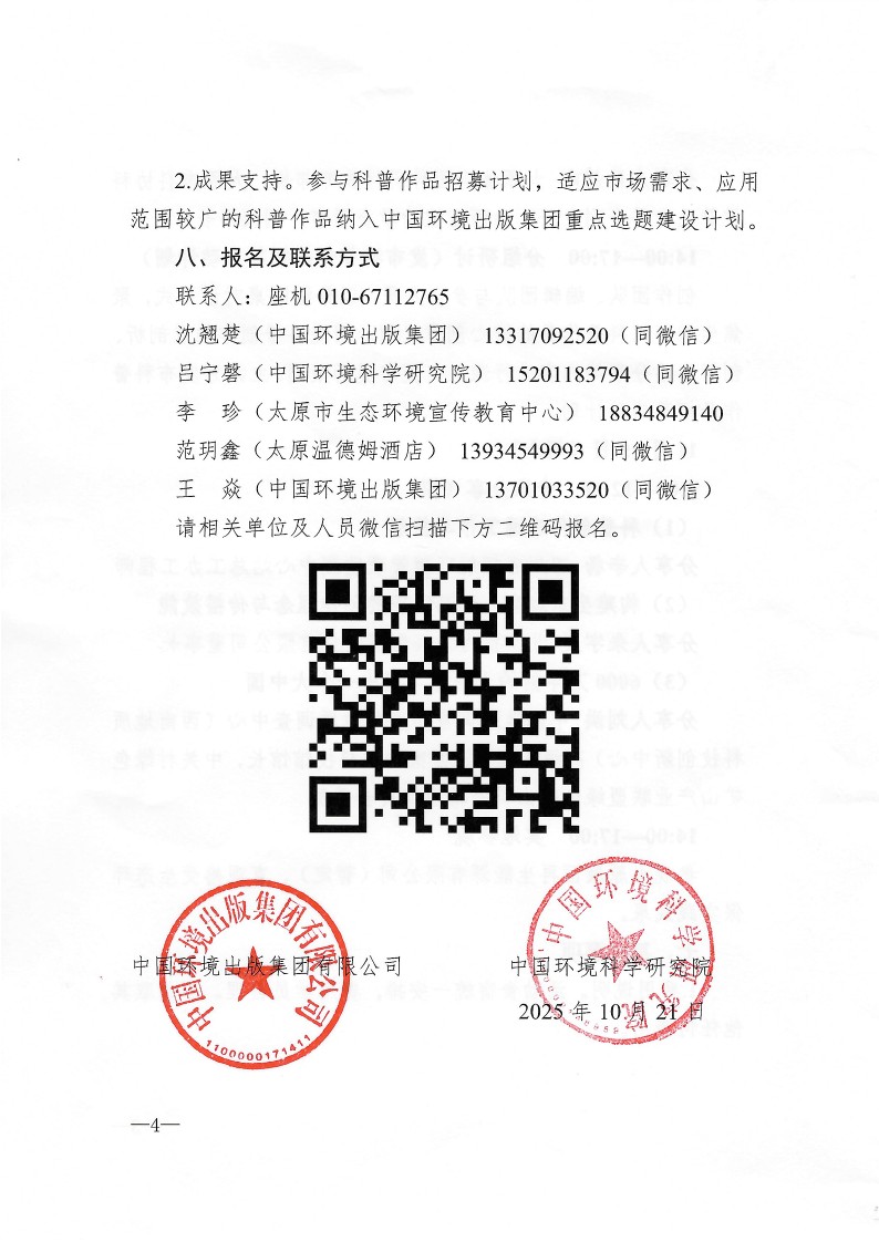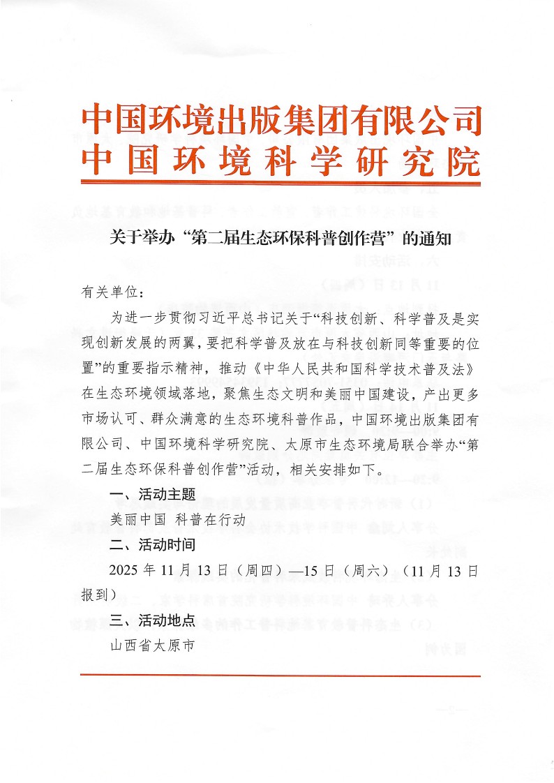 創(chuàng)作營(yíng)期間,主辦方中國(guó)環(huán)境出版集團(tuán)將發(fā)布“科普作品招募計(jì)劃”,與創(chuàng)作者攜手產(chǎn)出更多市場(chǎng)認(rèn)可、群眾滿意的生態(tài)環(huán)境科普作品。